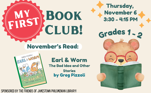 Join Colleen & Erin for My First Book Club. We meet after school, once a month, to read a story together and complete a story-related activity. A snack will be provided.